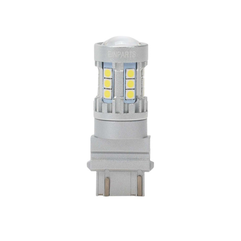 - Darbinė įtampa: 9 V - 16 V Tipas: P27/7W / 3157- Rankena: BA15S- Diodų tipas: SMD 3030- Diodų skaičius: 20/lemputė- Poliarizacija: Nr. 1- Maitinimo sistema: DC2- Šviesios spalvos: 6000K – šaltai balta – Darbinė temperatūra: Nuo -40 °C iki +50 °C - Aliuminio korpusas užtikrina efektyvų šilumos išsklaidymą ir stabilų veikimą. 1. Lemputė veikia nepriklausomai nuo įdėjimo krypties (nėra poliškumo). 2. Pastovus ryškumas ir šviesos diodų apsauga nuo įtampos šuolių. Taikymas: Atbulinės eigos žibintaiStop žibintaiDienos žibintai DRL3 3 Naudoti tik šiam tikslui pritaikytose transporto priemonėse ir įrenginiuose. Privalumai: - nėra poliarizacijos - greitas ir paprastas montavimas - stabilus ryškumas dėl nuolatinės srovės maitinimo - momentinis reagavimas įjungus - mažesnės energijos sąnaudos - didelis šviesos efektyvumas - tarnavimo laikas iki 50 000 valandų Į komplektą įeina: - 2 LED lemputės P27/7W / 3157 - Kvitas arba PVM sąskaita faktūra Lemputės matmenys Neatitinka ECEC reikalavimų. Tik važiavimui bekele. Už naudojimą viešaisiais keliais gali būti skiriama bauda, konfiskuojamas transporto priemonės registracijos liudijimas arba, susidūrimo atveju, prarandamas draudimas.