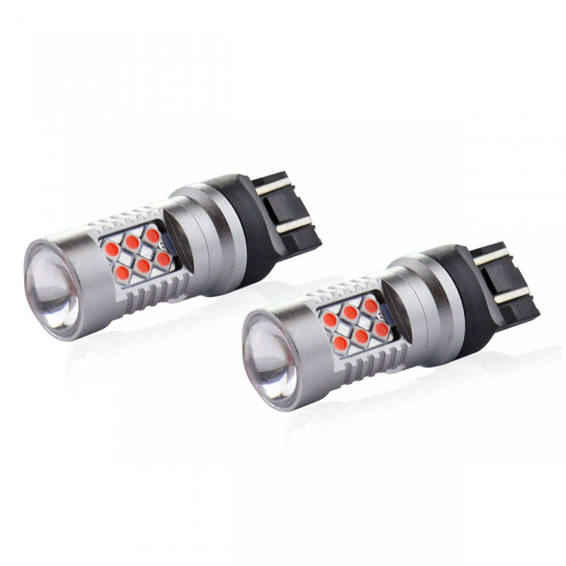 LED CANBUS lemputės 24SMD T20 WR21 / 5W raudona raudona 12V 24V AMIO-02581