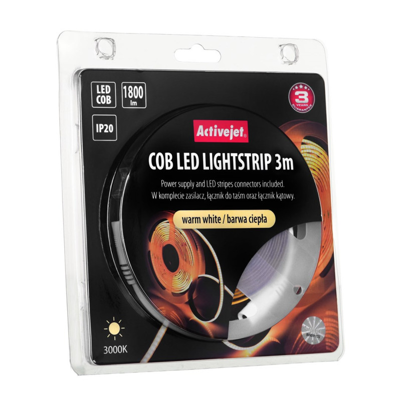Activejet AJE-COB 3m juostinė šviesa yra universali vidaus apšvietimo sprendimas, sukurtas įvairioms aplikacijoms. Jos kompaktiškas ir energiją taupantis dizainas leidžia ją naudoti skirtingose aplinkose.