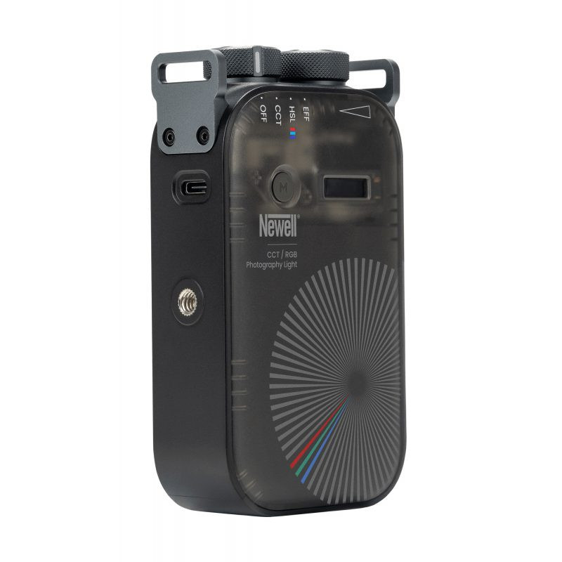 Newell Nucleo RGB LED šviesa siūlo 36,000 RGBWW spalvų ir spalvų temperatūros intervalą nuo 2500 K iki 9900 K. Ji turi integruotą 7500 mAh bateriją, kuri užtikrina iki 200 minučių veikimo laiką, ir komplektuojama su silikono difuzoriumi bei šaltu batų laikikliu.
