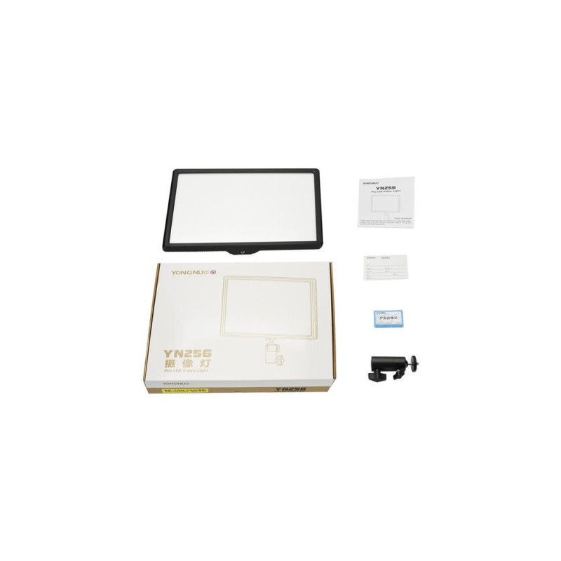 YongNuo YN256 LED šviestuvas su kintama spalvine temperatūra (3200K - 5500K). Šviesos intensyvumas reguliuojamas 10-100% ribose nepakeičiant spalvinės šviesos temperatūros.