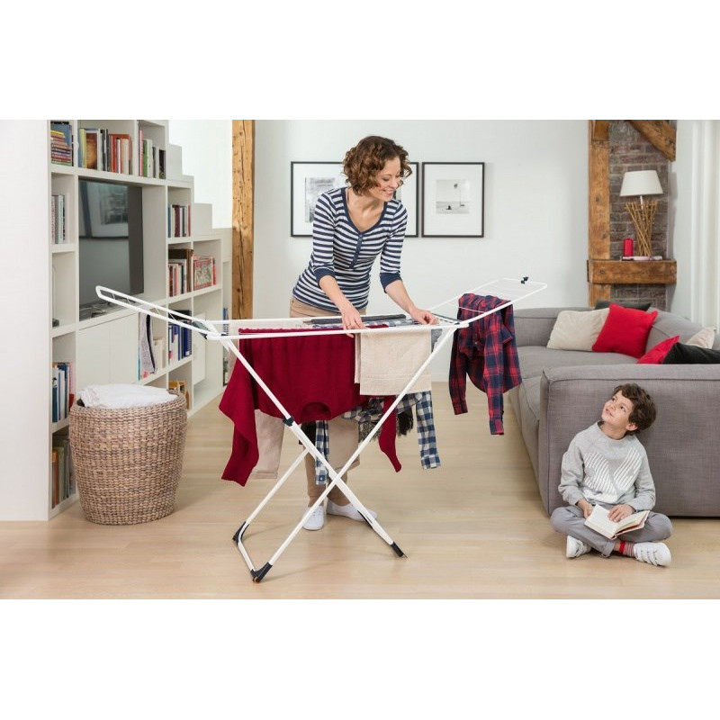Kompaktiškas ir sulankstomas drabužių džiovintuvas Vileda Universalus efektyviai džiovina drabužius, užimdama minimaliai vietos.