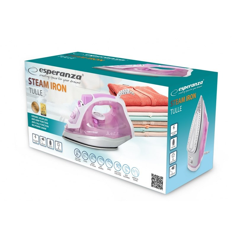 Esperanza EHI004 lygintuvas Dry Steam lygintuvas Keraminis padas 2400 W violetinė, balta