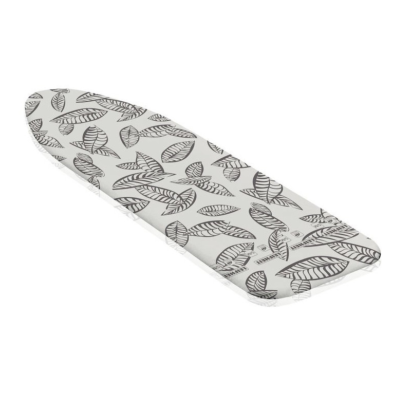 Leifheit Perfect Steam Air Board Express M turi paminkštintą viršutinį dangtį iš putų su daugiakolorėmis lapų raštais. Jo matmenys yra 1250 mm pločio ir 400 mm gylio, todėl jis puikiai tinka standartinėms lyginimo lentoms.
