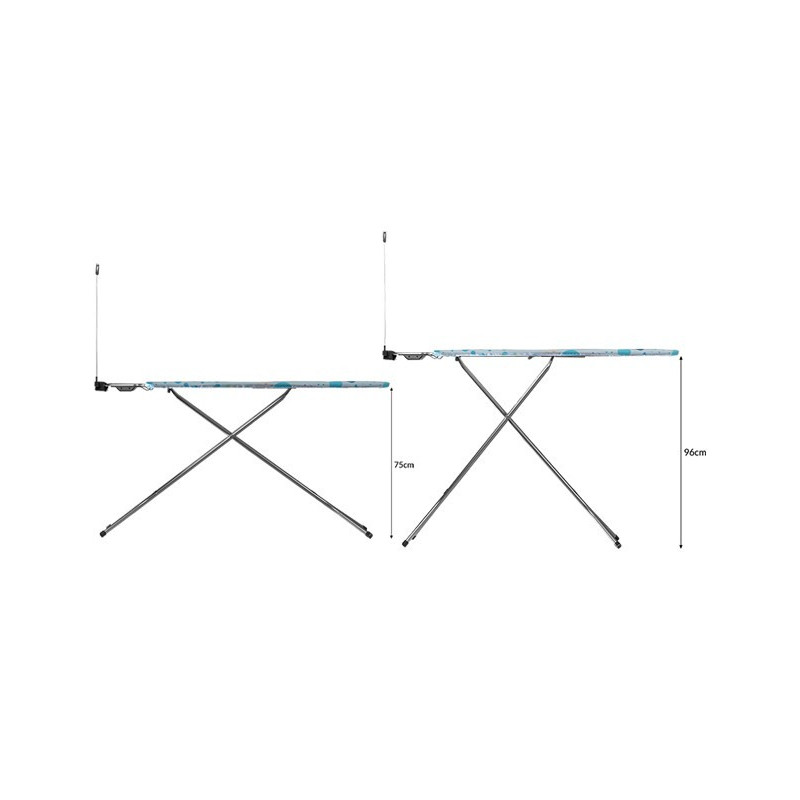 Viso dydžio lyginimo stalas su aukščio reguliavimu (75-96 cm) ir sulankstomu dizainu, idealiai tinkantis efektyviems lyginimo darbams. Tvirta konstrukcija ir patogi paviršiaus danga užtikrina patogumą ir ilgaamžiškumą.