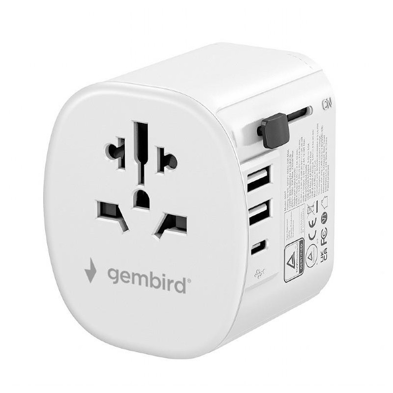 Įžemintas universalus kelioninis maitinimo adapteris su 3 USB įkrovimo prievadais