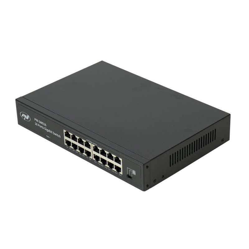 PNI SW016 16 x 10/100/1000 Mbps komutatoriaus paketas, gigabitas, metalinis korpusas ir 3 m CAT8 pataisa PNI U8030W