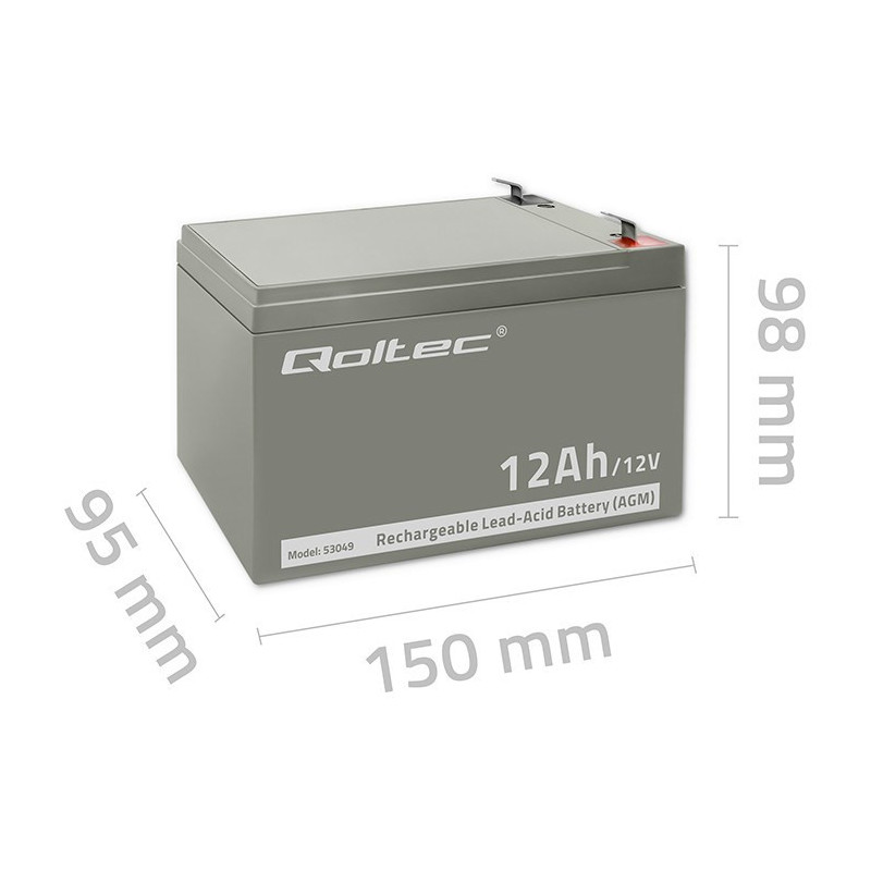 Qoltec 53049 AGM akumuliatorius, 12 V, 12 Ah