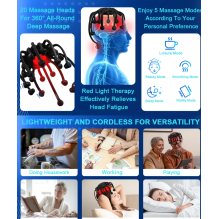 Octopus galvos masažuoklis sukurtas tam, kad suteiktų maksimalų atsipalaidavimą po ilgos ir įtemptos dienos. Unikalus dizainas su 20 masažo „čiuptuvų“ švelniai stimuliuoja galvos odą ir nervų taškus, o 5 masažo režimai leidžia pasirinkti individualų komfortą. Integruota raudonos šviesos terapija padeda skatinti kraujotaką, o Bluetooth funkcija leidžia masažo metu klausytis mėgstamos muzikos ar atsipalaidavimo garsų.