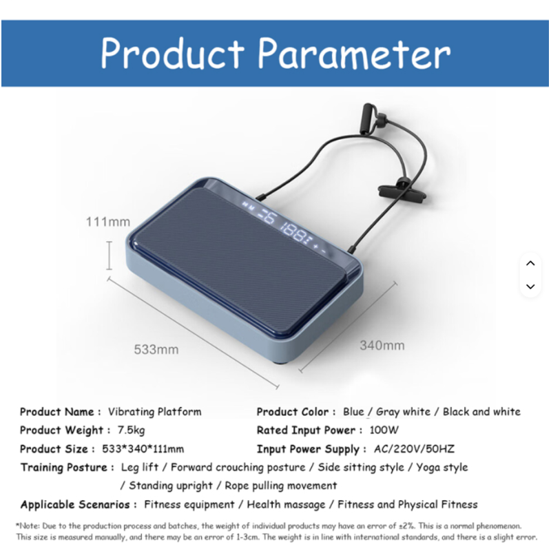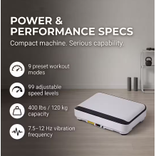 Šis pažangus vibracinis treniruoklis aktyvina raumenis, gerina kraujotaką ir padeda deginti kalorijas. Elegantiškas baltas dizainas ir skaitmeninis LED ekranas suteikia modernumo bei prabangos pojūtį.