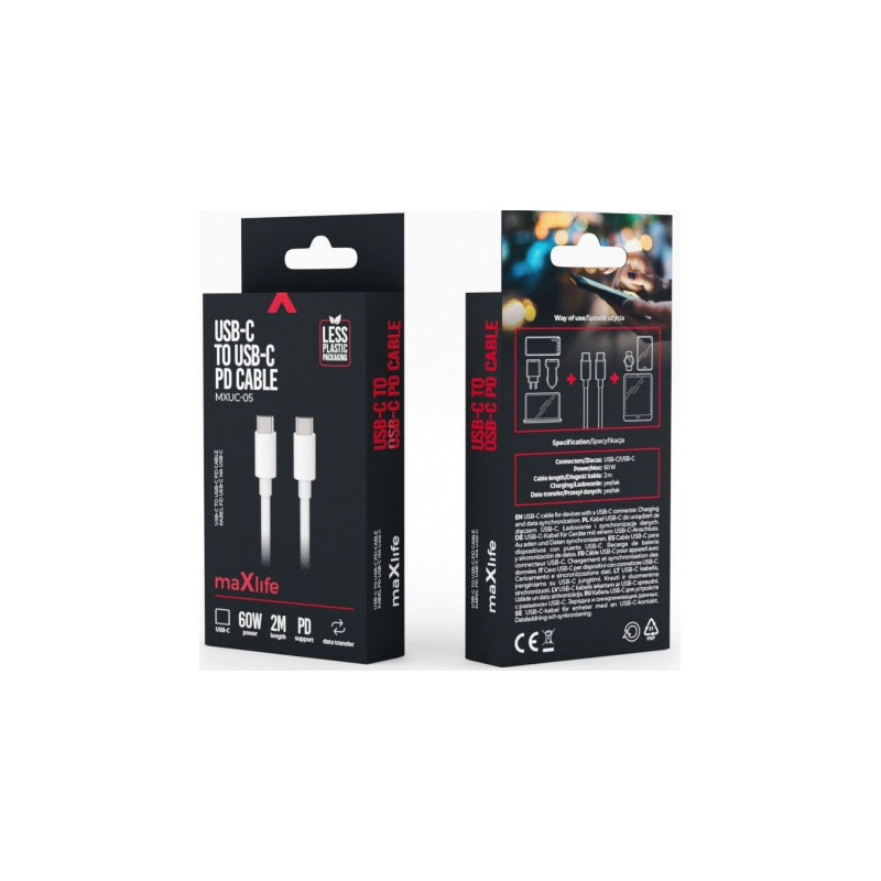 „maXlife MXUC-05“ USB-C į USB-C 2,0 m 60 W baltas
