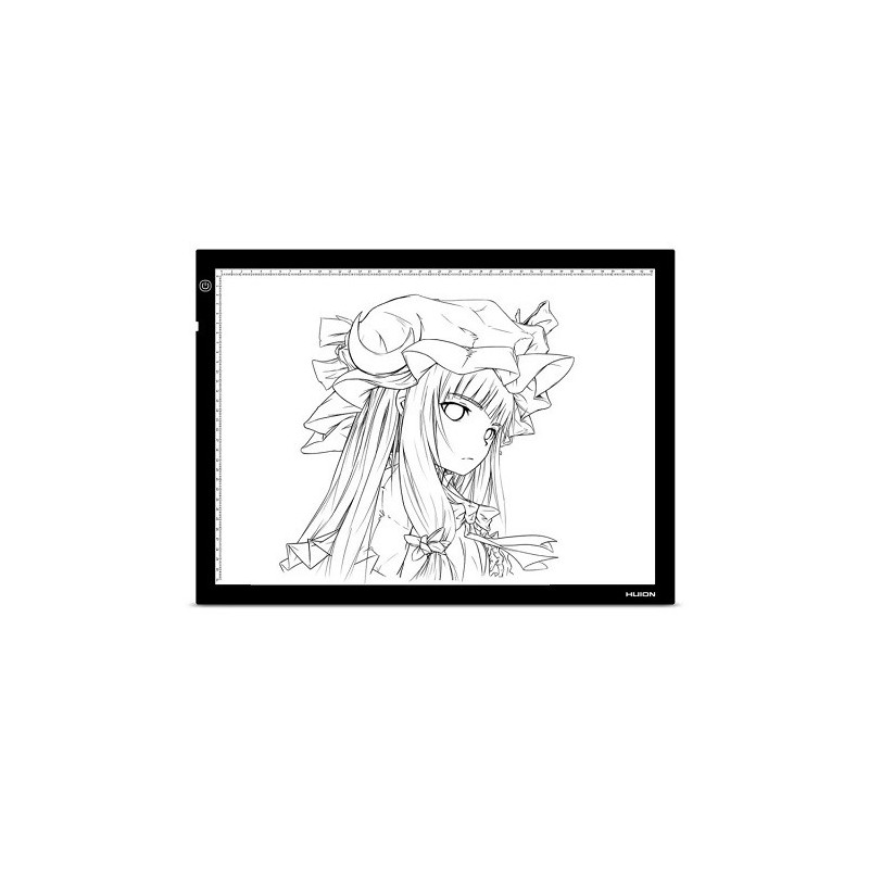 Huion A3 LED šviesos lenta turi patvarią akrilo paviršių ir reguliuojamą ryškumą su jutikliniu valdymu. Ji yra kompaktiško dizaino, veikia iš USB maitinimo šaltinio ir komplektuojama su piešimo pirštine patogumui.