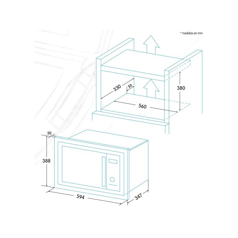 20 litres, 800 W and with 1000 W grill buit-in microwave