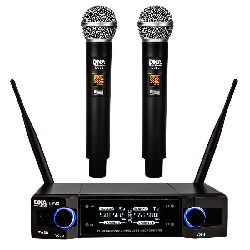 DNA Professional DVS2 - belaidis mikrofonas, 2 rankiniai siųstuvai + bazinis blokas (560-590 MHz)