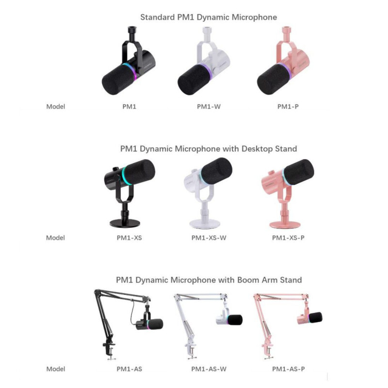 PM1 P mikrofonas rožinės spalvos turi XLR ir USB C jungtis, todėl puikiai tinka tokioms veikloms kaip podcast'ai ir žaidimai. Jo kardioidinė įrašymo schema efektyviai slopina triukšmą, o papildomos funkcijos, tokios kaip nutildymo mygtukas ir garso reguliatorius, užtikrina patogumą vartotojui.