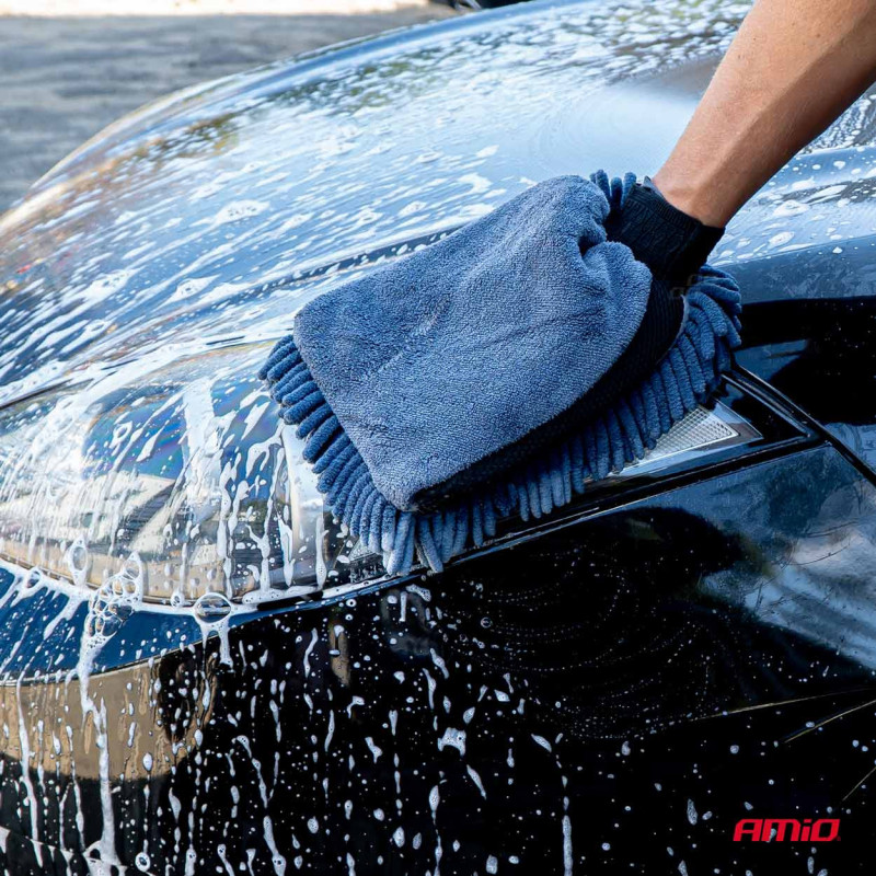 Mikropluošto automobilio džiovinimo pirštinė ir rankšluostis 94/800 g/m² 20x26/60x90 cm AMIO-04489