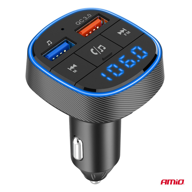 Automobilinis FM siųstuvas 2×USB-A 12V 24V AMIO-04648