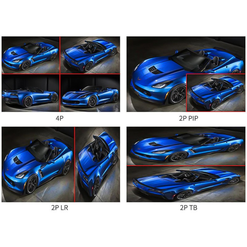 • Quad Split Display funkcija leidžia vienu metu stebėti iki keturių vaizdo šaltinių.