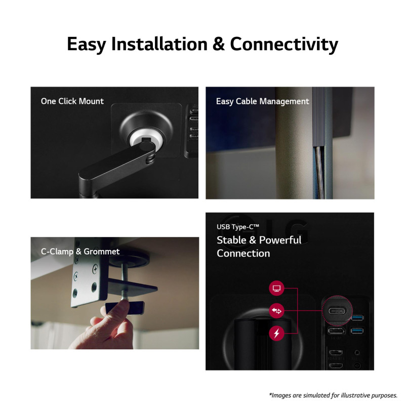 Kompaktiškas „Ergo“ dizainas užima labai mažai stalo paviršiaus ir taip pat palengvina montavimą. „Ergo“ USB-C vieno kabelio sprendimas padeda vartotojams sukurti netvarkingą aplinką ir užtikrina greitą duomenų perdavimą bei nešiojamojo kompiuterio įkrovimą vienu kabeliu.