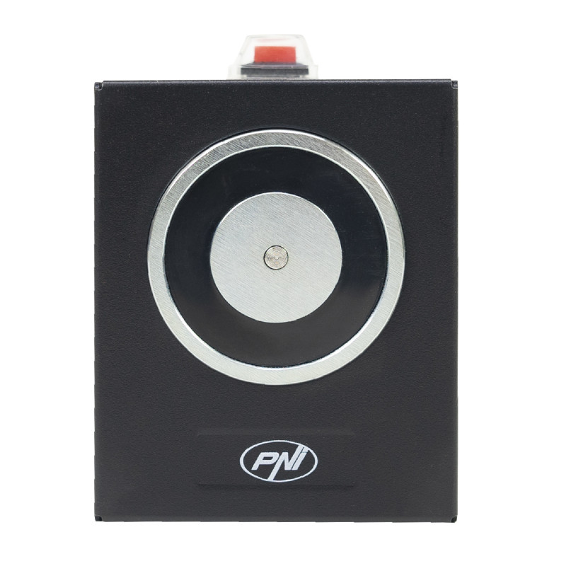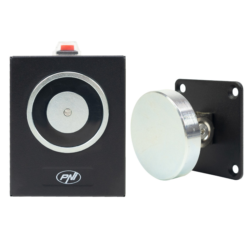 Elektromagnetas durims laikyti atidarytas PNI EM50KG, saugus gedimams, montuojamas ant sienos, atidarymo jėga 50 kg, 12/24 V, juodas