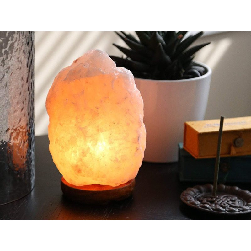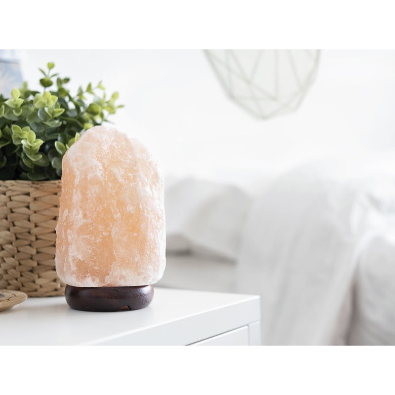 Natūralaus druskos akmens lempa, išgauta Himalajuose, apdorota ir išpjauta rankomis; rankų darbo pjovimas ir apdirbimas suteikia kiekvienam gaminiui unikalią formą ir atspalvį. Su nuimamu, lengvai montuojamu lempos laikikliu ir reguliatoriumi šviesos intensyvumui reguliuoti. Su buko medienos pagrindu ir E14 tipo lempute.