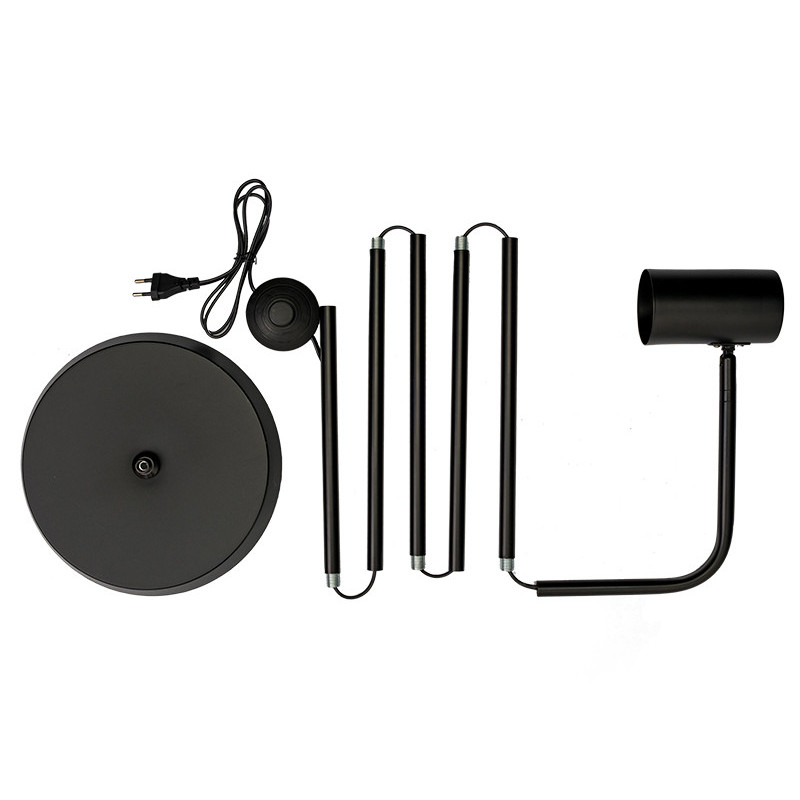 Šviestuvas pagamintas iš metalo su plastikiniais elementais, kurie užtikrina jo patvarumą ir stabilumą.