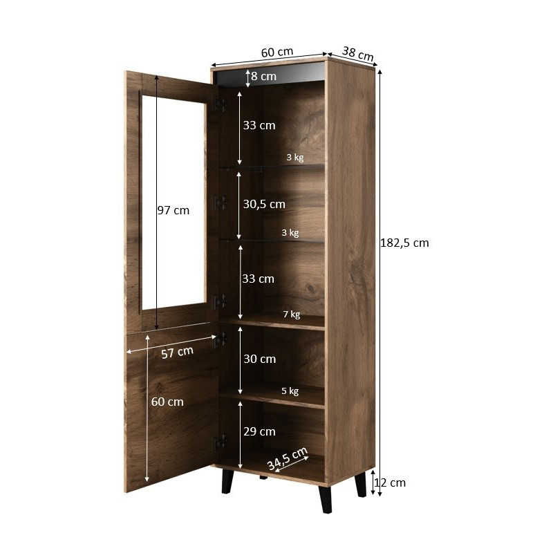 Spintelė NORD 60x38x182,5 cm ąžuolo wotan/antracitas