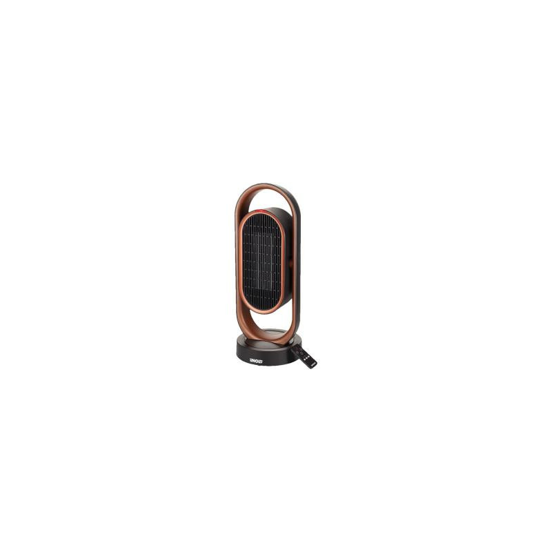 Unold 3D keraminis ventiliatorius šildytuvas pasižymi stilingu juodu ir variniu dizainu, 3D oro cirkuliacija bei reguliuojamu svyravimu. Jame yra nuotolinio valdymo pultas patogiam naudojimui, 8 valandų laikmatis ir saugumo funkcijos, tokios kaip perkaitimo ir apvirtimo apsauga.