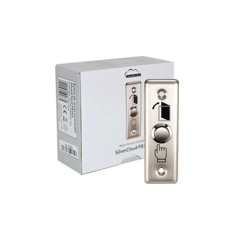 Iebūvējama piekļuves poga SilverCloud PB303, NO/COM izejas kontakts, maks. 12V/24V 3A, nerūsējošais