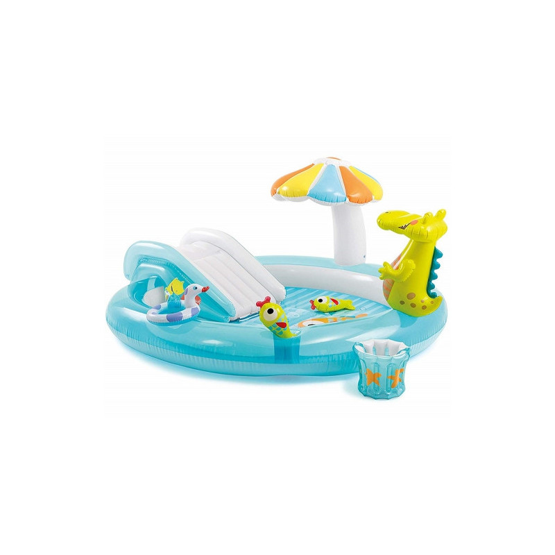 Intex Gator žaidimų centras yra pripučiamas vandens žaidimų plotas, skirtas lauko naudojimui. Jame yra įvairių veiklų, kurios skatins vaikus žaisti vandenyje.