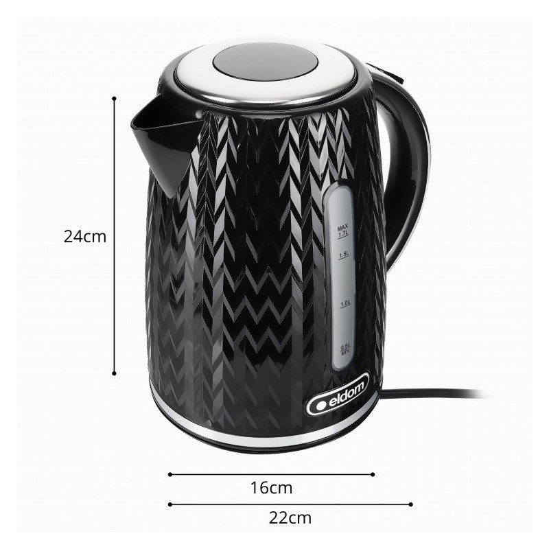 NELO virdulys turi 1,7 litro talpą ir veikia 2000 vatų galia. Jame yra automatinio išsijungimo funkcija, 360° sukama bazė ir vandens lygio indikatorius.