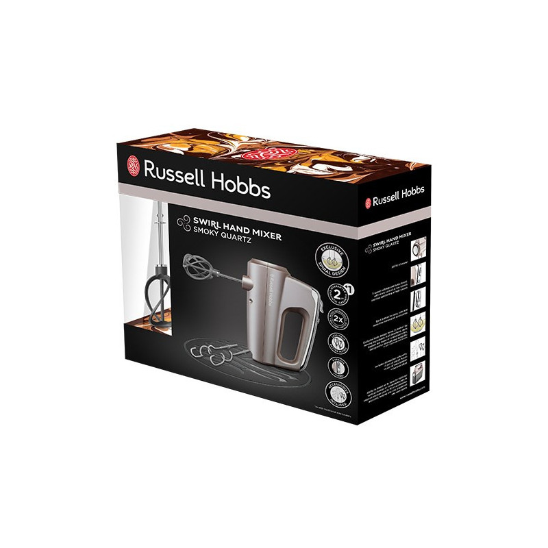 Russell Hobbs 25892-56 rankinis plakiklis turi galingą 350 W variklį ir siūlo penkis kintamus greičius, leidžiančius tiksliai maišyti, minkyti ir plakti. Jame yra indaplovėje plaunamų dalių, saugojimo dėžutė, taip pat plaktuvai, šluotelė ir tešlos kabliai.