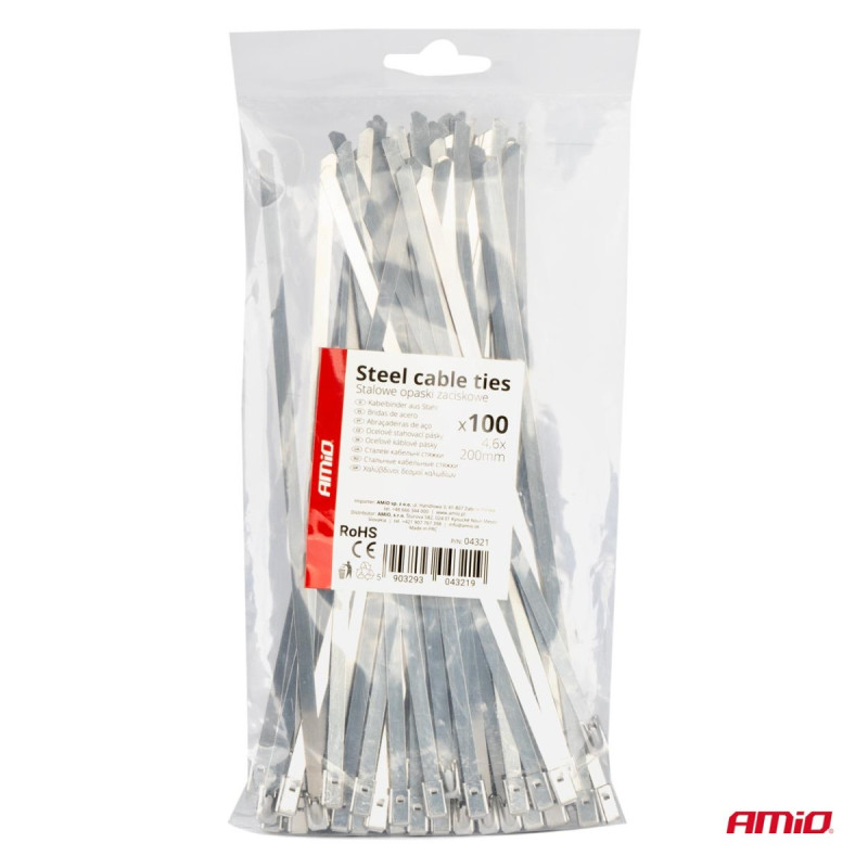 Profesionalūs „AMiO“ nerūdijančio plieno kabelių raiščiai, kurių matmenys 4,6 x 200 mm, yra patikimas sprendimas ten, kur reikalingas didžiausias tvirtumas ir atsparumas lauko sąlygoms. Sukurti pramonės, automobilių ir statybos reikmėms, jie puikiai tinka ten, kur reikalingas patvarumas ir saugus tvirtinimas.