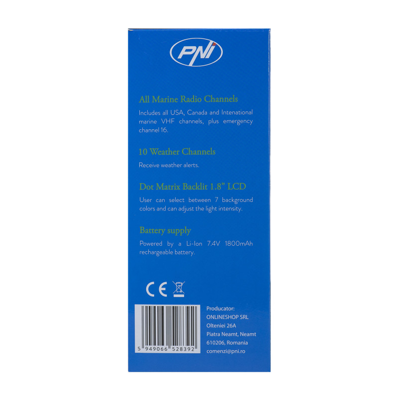 Nešiojama jūrinė radijo stotis PNI DS890, 88 kanalai, 10 orų kanalų, reguliuojamas triukšmo slopinimas, „Roger Beep“, dv