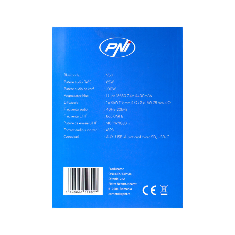 Nešiojama kolonėlė PNI FunBox BT600 su „Bluetooth“, 65 W, MP3 grotuvu, kortelių skaitytuvu, USB, belaidžiu mikrofonu, 44