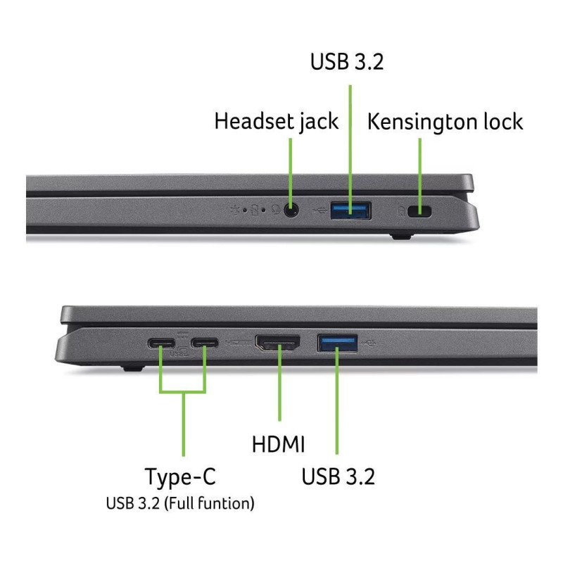 The Acer Aspire Go 17 offers a wide variety of connectivity options, ensuring that you can connect to all your essential devices and peripherals. With multiple USB ports, including USB-C, as well as an HDMI port for connecting to external displays, you can easily expand the functionality of the laptop. The Wi-Fi capability ensures fast and reliable internet connectivity, so you can stay connected wherever you are.