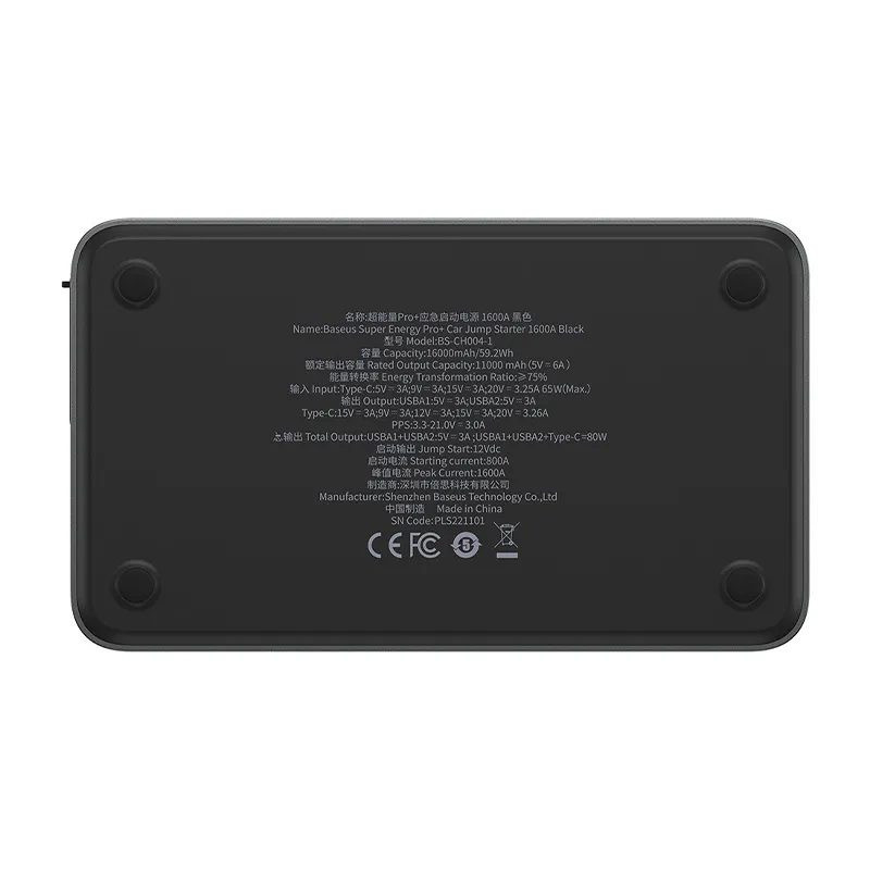 Išorinė baterija / „Baseus Super Energy PRO“ automobilio užvedimo laidas, 1600 A, USB (juodas)