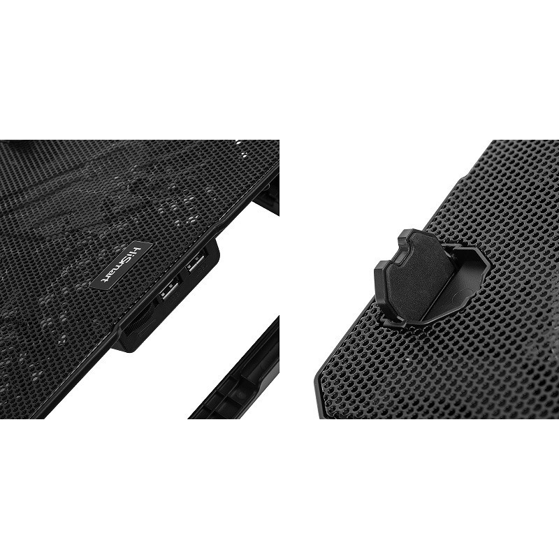Nešiojamojo kompiuterio aušinimo stovas HiSmart DCX-039, metalinis, 5 padėčių, sulankstomas, su 2x LED ventiliatoriais, 2x USB 2.0 Type-A sąsajomis, juodos spalvos.
