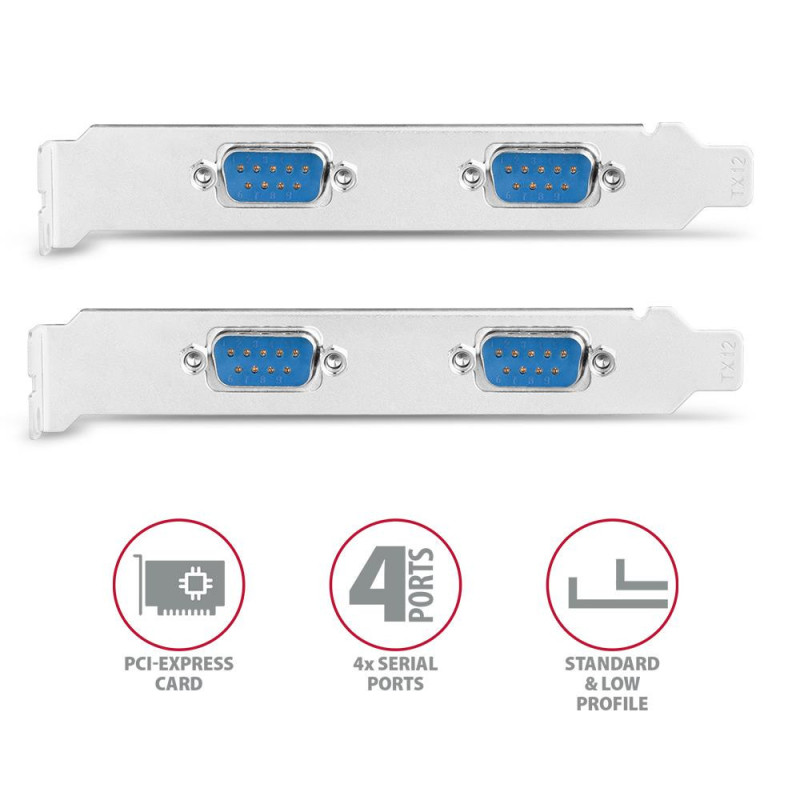 „AXAGON PCEA-S4N PCI-Express“ plokštė išplečia jūsų stalinį kompiuterį keturiais RS-232 nuosekliaisiais prievadais su DB-9 jungtimis.