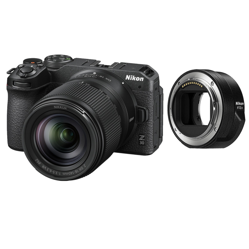 Keliautojo rinkinys - Apima Z 30 beveidrodinį fotoaparatą ir NIKKOR Z DX 18-140 mm f/3,5-6,3 VR kelioninį objektyvą., bei FTZ adapterį.