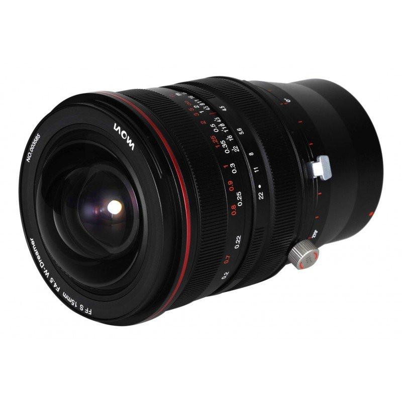 Laowa 15mm f/4.5 Zero-D Shift objektyvas Sony E siūlo ±11mm poslinkio diapazoną ir 360° sukimosi modulį perspektyvos kontrolei. Jis turi minimalią fokusavimo atstumą 20 cm ir optinį dizainą, sudarytą iš 17 elementų 11 grupių, užtikrinantį išskirtinę vaizdo kokybę.