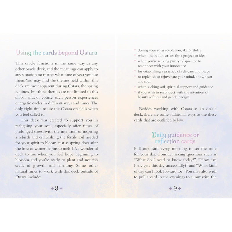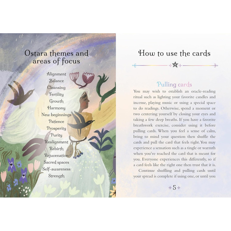 The Witches' Seasons: Ostara Oracle Card Set includes 44 beautifully illustrated oracle cards and a guide with card explanations and rituals. The box measures approximately 12.6 x 16.2 x 4.8 cm and weighs approximately 426 g.