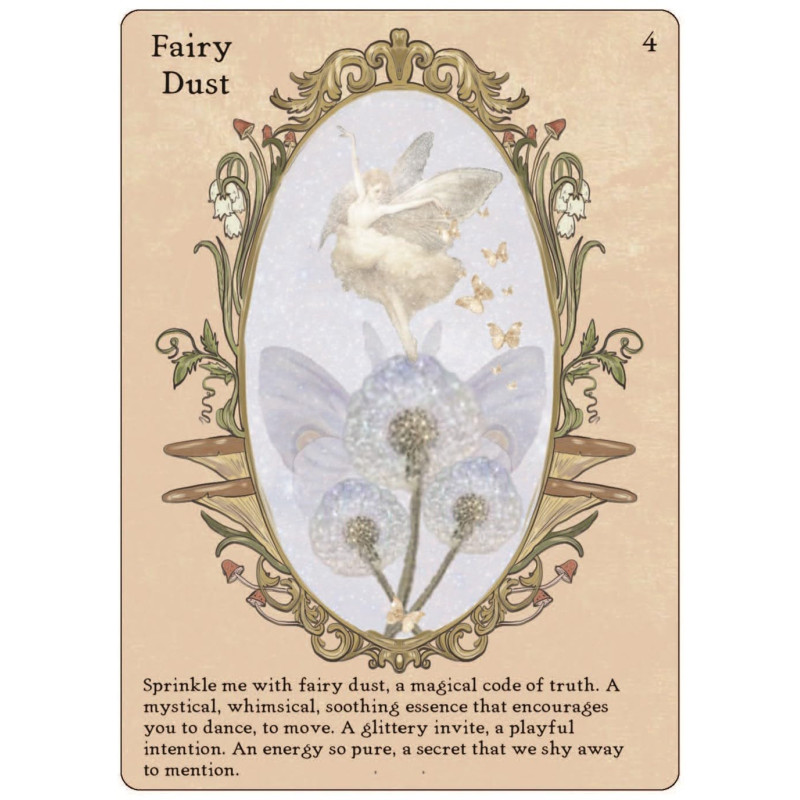 Fėjų seserų orakulo kortų rinkinys apima 33 kortas ir anglų kalbos gidą. Rinkinys yra maždaug 13 x 10 x 3,2 cm dydžio ir sveria 285 g.