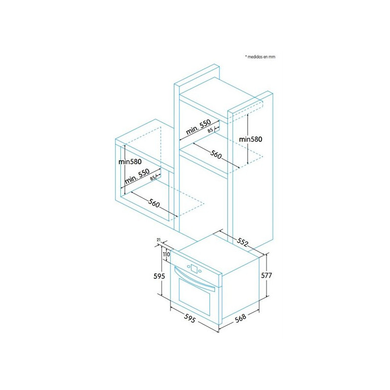External dimensions (height x width x depth): 595 x 595 x 547 mm