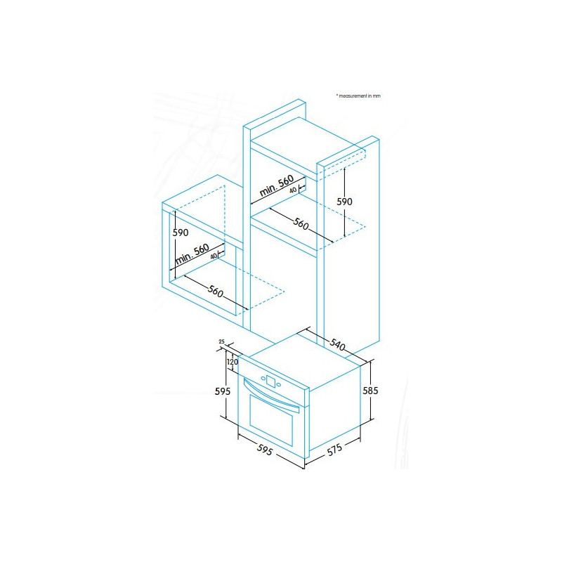 External dimensions (height x width x depth): 595 x 595 x 575 mm