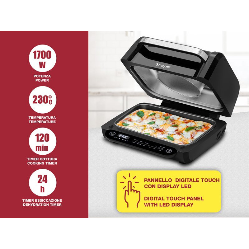 Kepimas be aliejaus: Naudojama greita karšto oro cirkuliacija sveikesniam kepimui.
