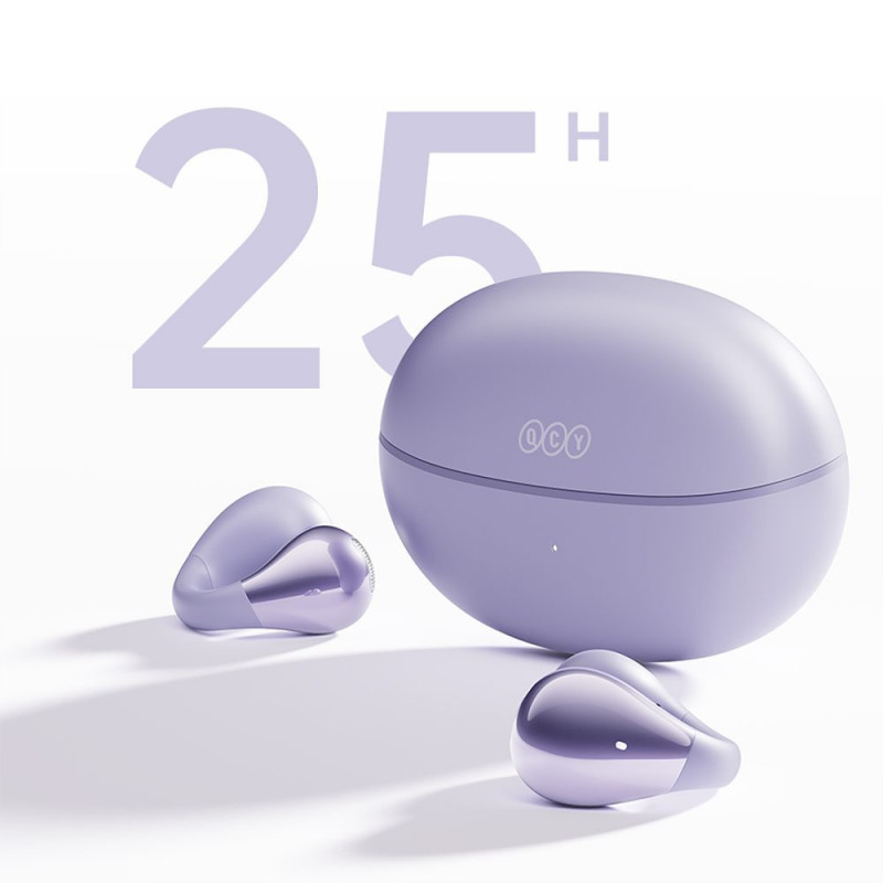 OWS QCY Crossky C30 ausinės su spaustuku, IPX4, „Bluetooth 5.4“ – violetinės