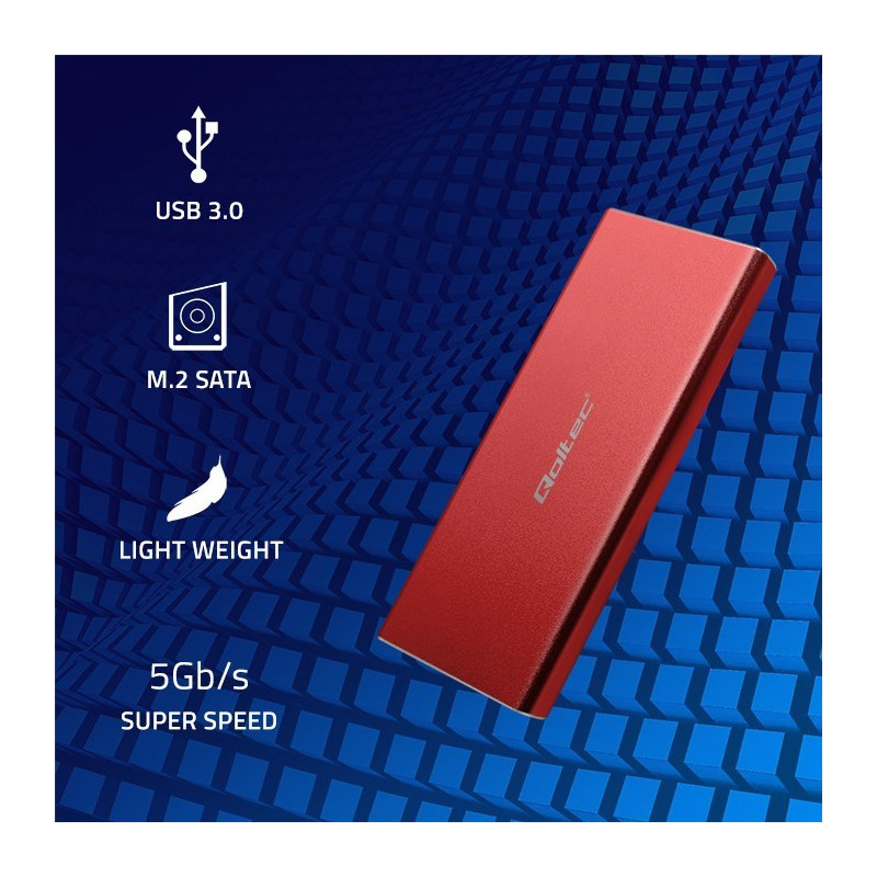 Qoltec 51831 Korpusas | M.2 SSD diskas | SATA | NGFF| USB 3.0 | Super greitis 5Gb/s | 2TB | Raudona