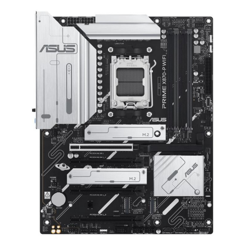 ASUS Prime series motherboards are expertly engineered to unleash the full potential of AMD Ryzen™ 9000 series processors. Boasting a robust power design, comprehensive cooling solutions and intelligent tuning options, the PRIME X870-P WIFI motherboard provides users and PC DIY builders with a range of performance optimizations via intuitive software and firmware features. It's designed to be Advanced AI PC-ready, offering the power and connectivity needed for demanding AI applications.