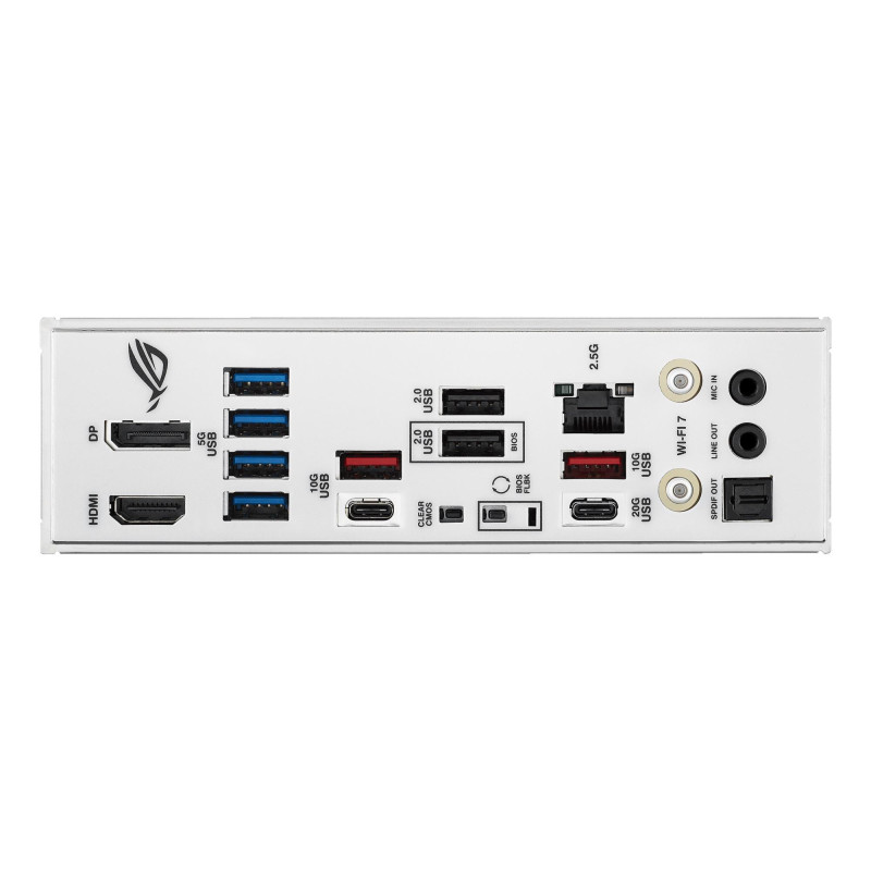 The ROG Strix B850-A stands out with its striking white PCB, offering a fresh and modern aesthetic that seamlessly complements almost any system build. The matching metallic heatsinks enhance its clean, crisp look, while subtle RGB lighting on the I/O shroud allows you to either maintain a sleek, understated appearance or showcase a bold, luminous design.